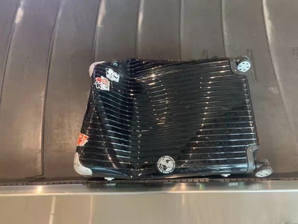 行李箱經(jīng)過碰撞后的情況