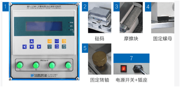 將標準滑塊置于軸桿上,通過摩擦塊固定標準摩擦紙,按照所需測試重量放置砝碼。