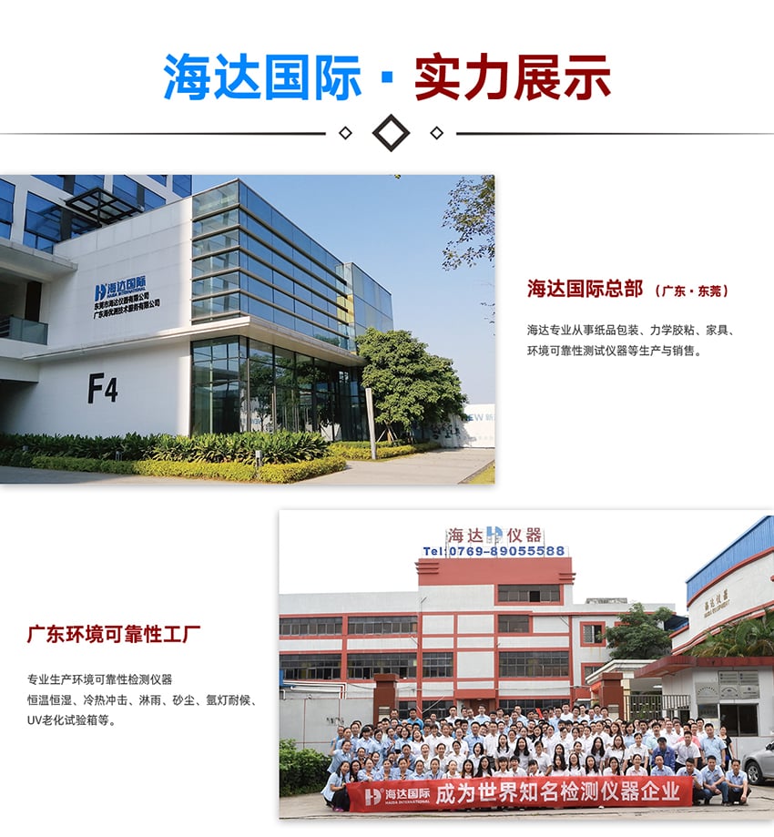 海達作為一家專注于紙箱檢測儀器的大型制造商,肩負著“讓每一家企業擁有高品質的檢測儀器”的使命。在技術上:海達擁有研發、生產、銷售、計量、服務等多個獨立體系,4個產學研基地,10多名博士導師顧問,10多項高新技術產品,50多項產品專利,300多名企業員工;海達產品廣泛應用于各科研單位、質檢機構、學術探討等各大領域,且產品符合GB、ISO、ASTM、EN、JIS、TAPPI、DIN、BS等國內外標準。在服務上:海達在國內有廣東,江蘇,福建,江西,重慶,湖南,廣西,天津,山東等十多家分公司;在海外有印度,馬來西亞,新加坡,巴基斯坦,泰國,土耳其,英國,越南,孟加拉等多家分銷服務商。能快速的向國內乃至世界提供專業又便捷的服務。