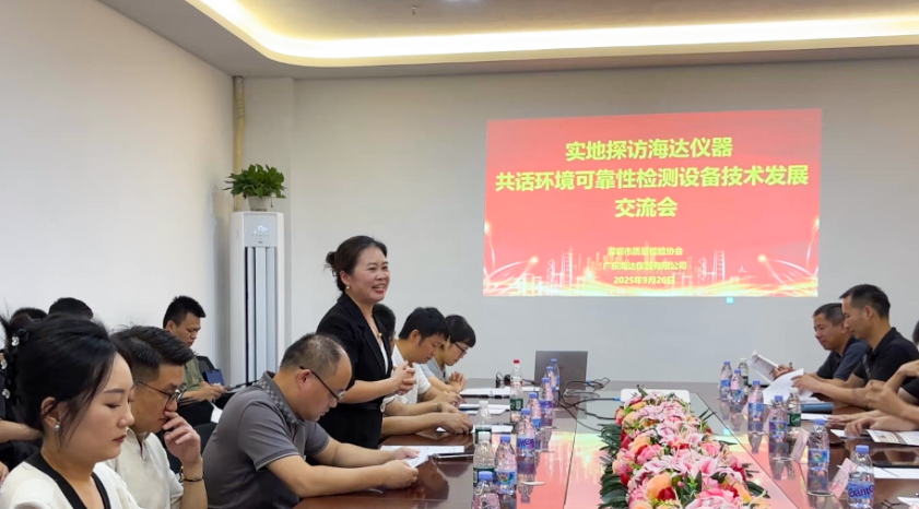 9月26日,在深圳市質量檢驗協會和廣東海達儀器有限公司共同組織下,原深圳市市場監督管理局一級調研員周文、深圳市質量檢驗協會會長鐘勇、深圳市質量檢驗協會執行秘書長任清泉、副秘書長吳漢武及會員代表40余人到訪廣東海達儀器有限公司,我司董事鐘鳳姣、業務負責人張建熱烈歡迎各位嘉賓的到來,并陪同嘉賓通過實地參觀、技術分享、成果發布、互動交流,共同為環境可靠性檢測行業的創新發展注入新思考、搭建新橋梁。